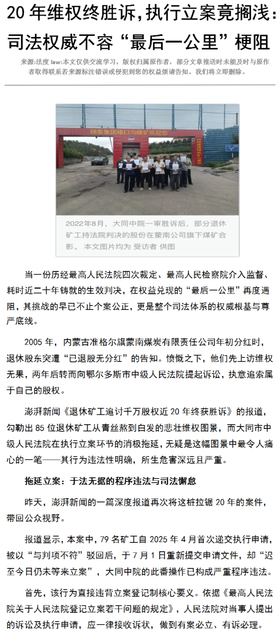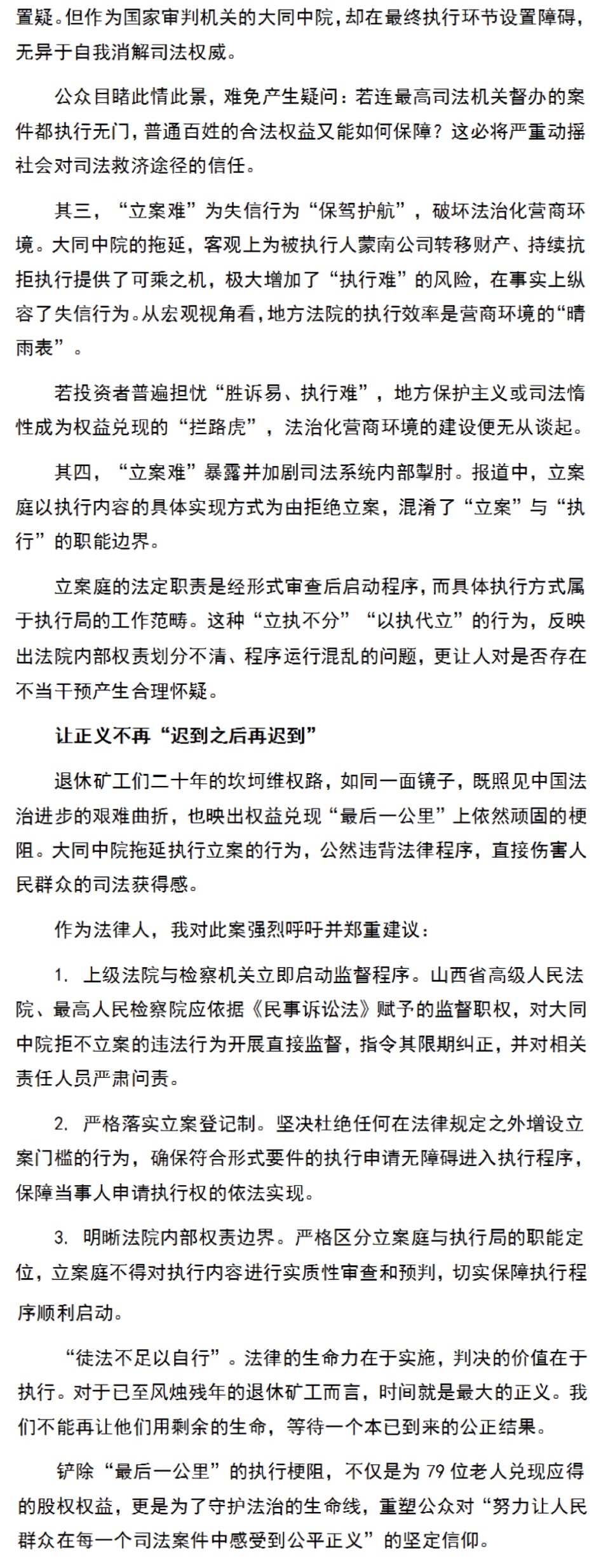 20年维权终胜诉,执行立案竟搁浅:司法权威不容“最后一公里”梗阻