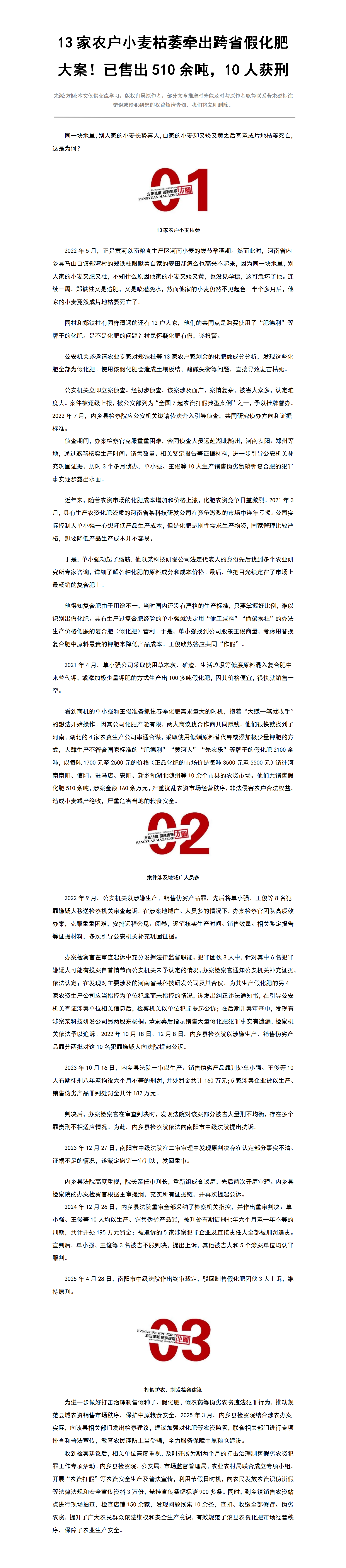 13家农户小麦枯萎牵出跨省假化肥大案!已售出510余吨,10人获刑
